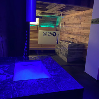 Es gibt einen Innenpool mit Jacuzzi und einen beheizbaren großen Außenpool. Der Sauna-Bereich ist sehr schön gestaltet. Es gibt viele Saunen, einen Ruhebereich, eine Außensauna, einen Schwimmteich, ein Eis und Schnee-Zimmer, Getränke.